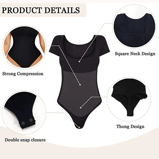 Short Sleeve U Neck Tummy Control Thong Bodysuit